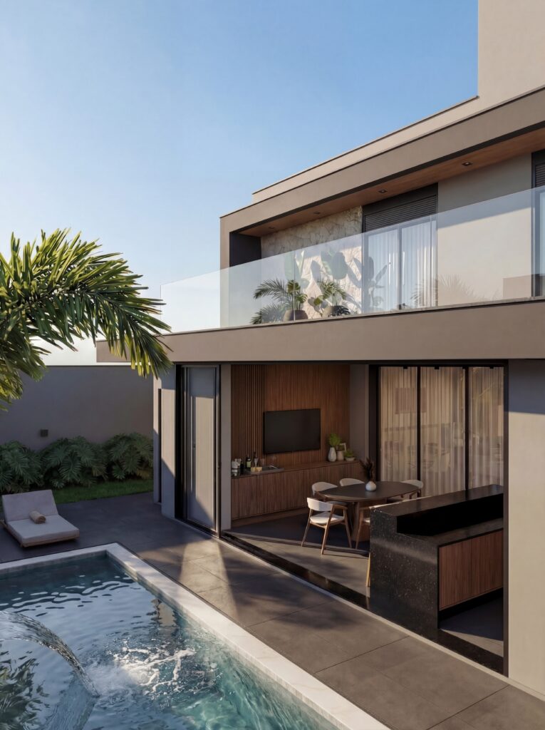 Área Terreno: 522,00m²Área Construída: 342,31m²Pavimento Térreo: 202,12m²Pavimento Superior: 125,19m²Piscina: 15,00m²